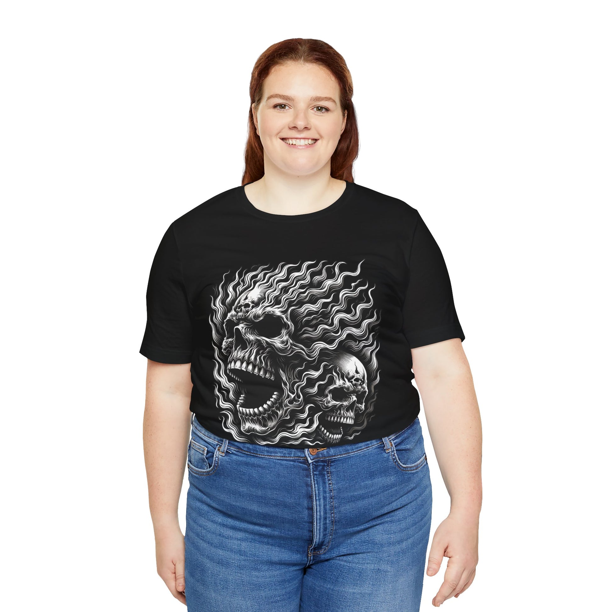 Unleash your fury with our masterfully illustrated skull t-shirt. Drenched in fire, this menacing, screaming figure epitomizes primal anger. Painstakingly detailed with intricate, shade-free patterns smoldering against a solid black backdrop, it's a visually striking tribute to unapologetic wrath. Perfect for the passionate skull devotee seeking to add some heat to their wardrobe. #SkullSyndicate #Wrath #FireFury #IntricateArtistry #MenacingMacabre #DarkAesthetic #AngryApparel #SkullDevotee #ScreamingSkull #BlazingBlack