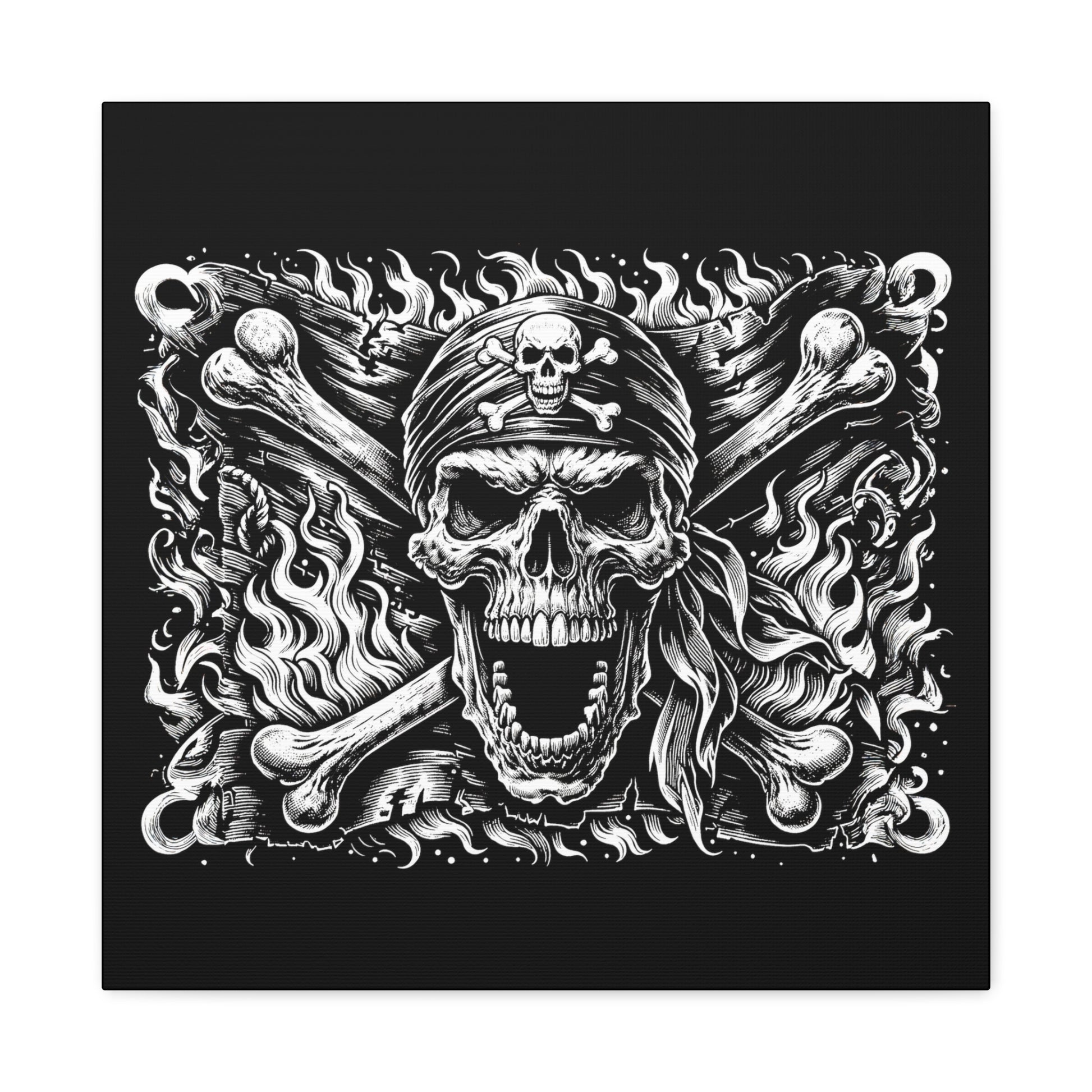 Immerse yourself in the depths of this menacing and angry Shadow Necromancer - Canvas. Crafted with an intricate design, it's set on a deep black background, making the details truly pop. Ideal for dark art aficionados, it embodies a luxurious yet haunting pirate aesthetic. #skullsyndicate #pirate #darkart #SkullArt #CanvasArt #PirateFlag #BlackAndWhiteArt #IntricateDesigns #WallArt #HomeDecor #LuxuriousArt.